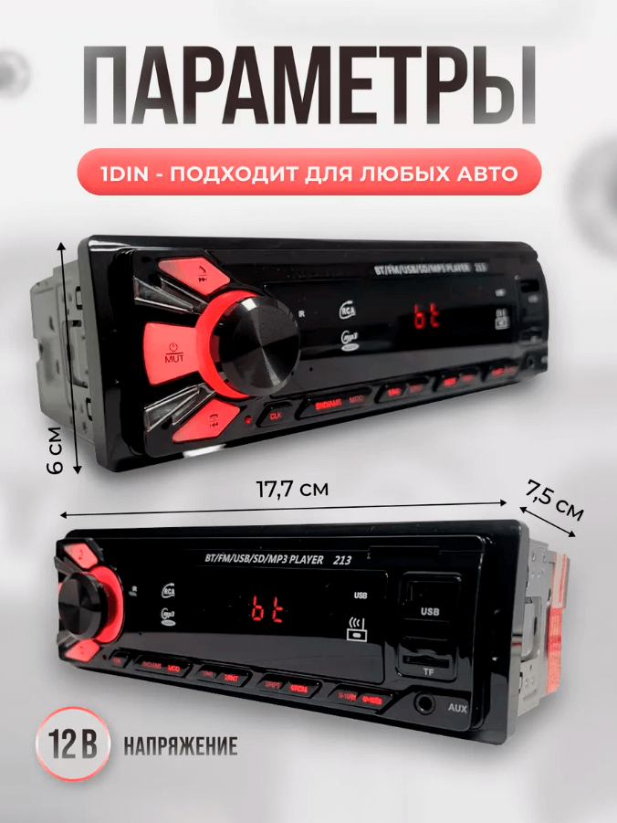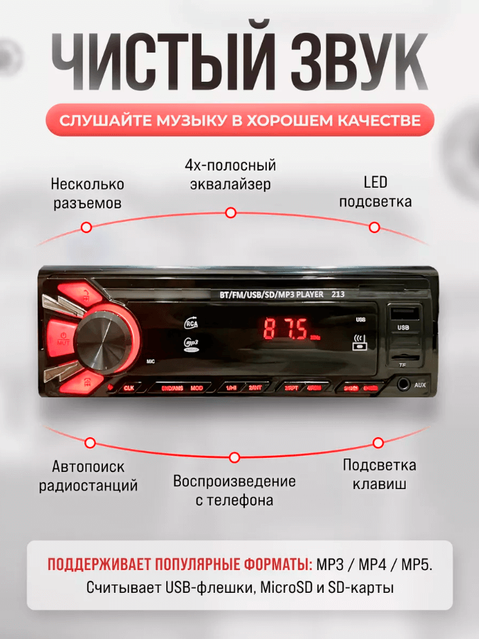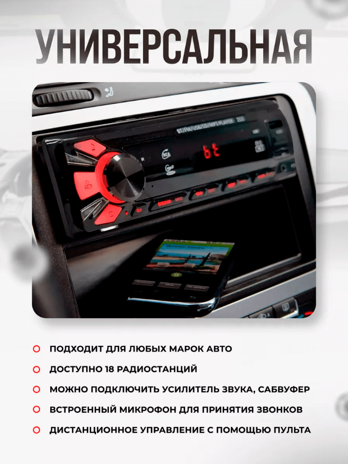 Магнитола поддерживает популярные форматы как MP3, считывает USB-флешки, TF-карты. Данная магнитола является универсальной и подойдет для любой марки авто! С помощью функции Bluetooth можно слушать музыку с телефона, а также принимать звонки, используя кнопки «Принять вызов» и «Сбросить вызов».
